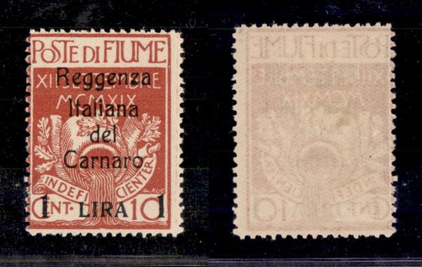 1920 - 1 lira su 10 cent (143 t) - senza emblema al retro - gomma originale (220)