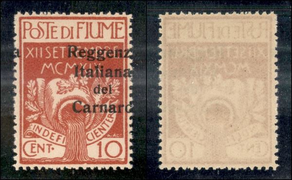 1920 - 10 cent Carnaro (134zdg) con soprastampa spostata (a cavallo) - gomma integra (225)
