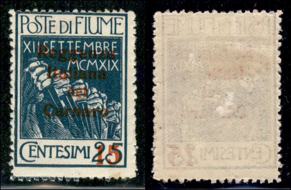 1920 - 15 cent su 25 cent Reggenza del Carnaro (137a - azzurro) - gomma originale (350)