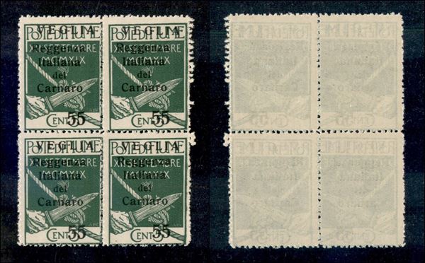 1920 - 55 cent su 5 (10) - quartina con resti di doppia dentellatura in verticale a destra - gomma integra (1200+)