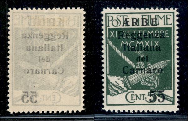 1920 - 55 cent su 5 Carnaro (142zt) con leggero decalco - gomma originale