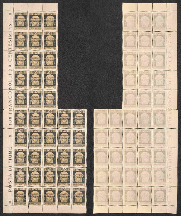 1921 - 15 cent Governo Provvisorio (151) - blocco angolare di 40 - gomma integra - notato 151zb in pos. 22 (620+)