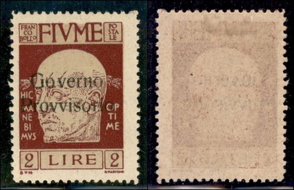 1921 - 2 lire Governo Provvisorio (160zb) vv non distanziate - gomma originale (700)