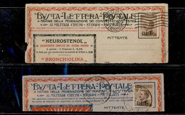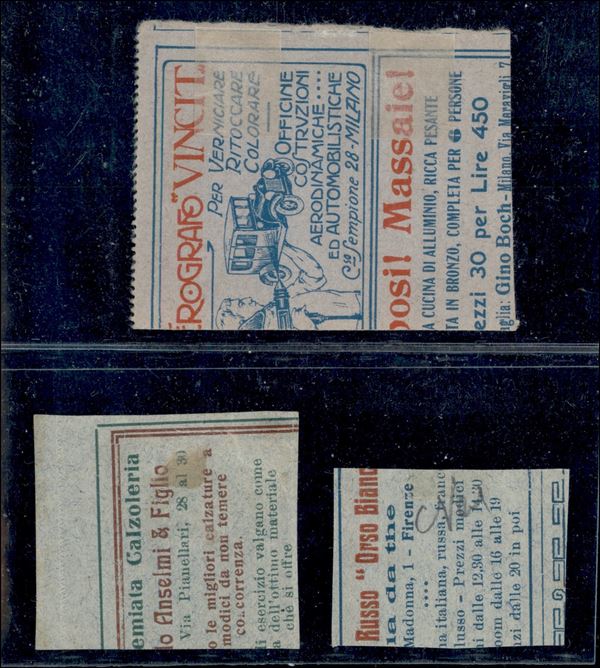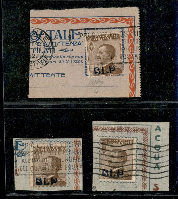 1921 - 40 cent (4) - tre frammenti + due testatine di busta - soprastampe di colori diversi - notata una prima tiratura (Oliva)