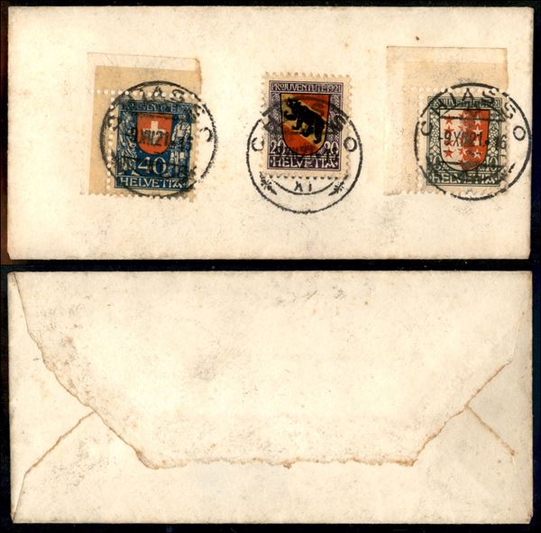 1921 - Pro Juventute (172/174) - serie completa usata su parte di bustina - Chiasso 9.12.21