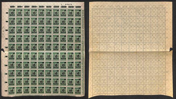 1923 - 15 Tausend su 40 marchi (279) - intero foglio di 100 - gomma integra