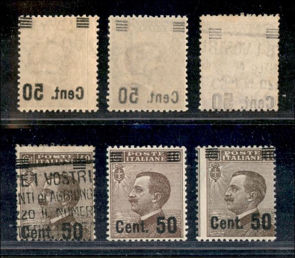 1923 - 50 cent su 40 cent Michetti (139zc) - decalco della soprastampa - due nuovi integri + uno usato (non quotato)