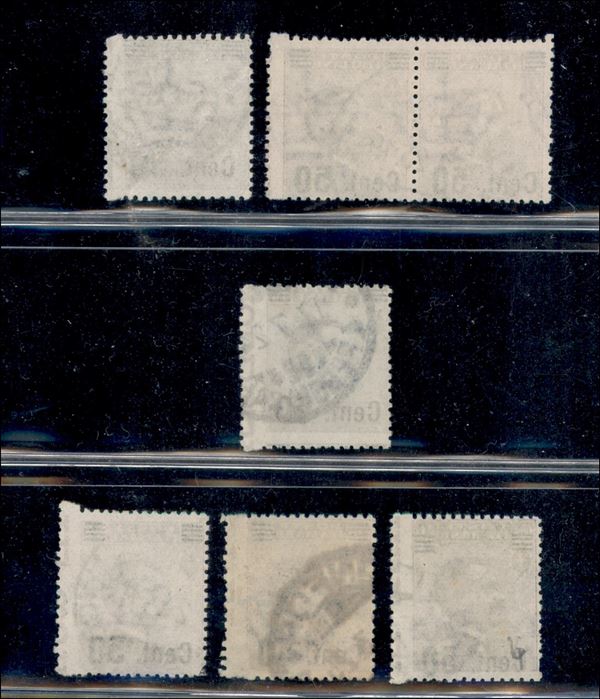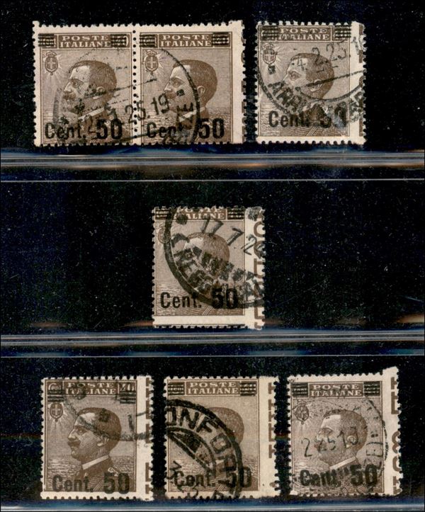 1923 - 50 cent su 40 Michetti (139yca) con dentellatura destra spostata sulle diciture marginali - 6 pezzi usati con spostamenti diversi - non quotati usati