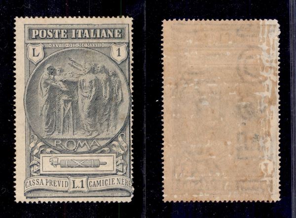 1923 - Camicie Nere - 1 lira (149) - filigrana lettere (TESOR - 12/10) laterale - gomma integra (con consuete falle naturali) - non catalogato
