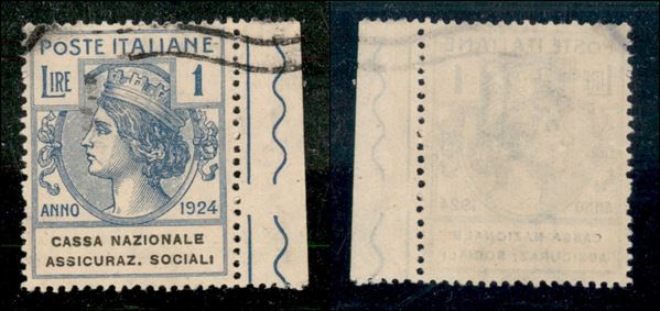 1924 - 1 lira Assicuraz. Sociali (29) usato - ottimamente centrato