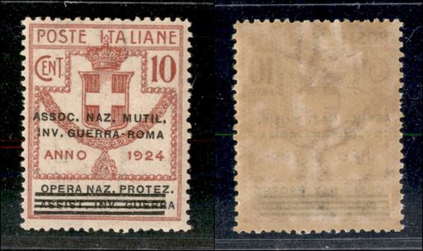 1924 - 10 cent Inv. Guerra Roma (71ab) con soprastampa in basso - gomma originale con impercettibile traccia di linguella - ben centrato (300+)