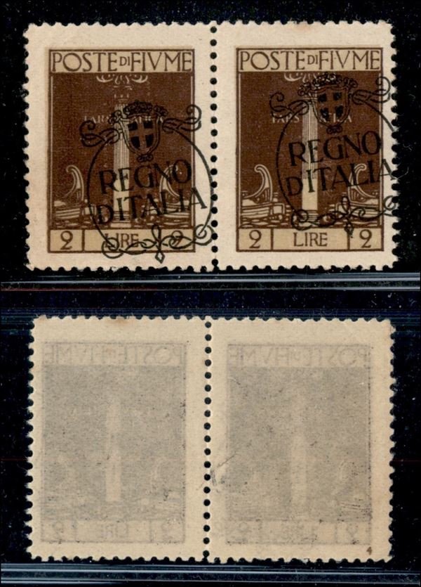 1924 - 2 lire Regno d'Italia (211- varietāKb) - coppia con soprastampa oblique - gomma integra - non catalogato