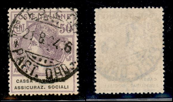 1924 - 50 cent Assicuraz. Sociali (28) usato - ottimamente centrato