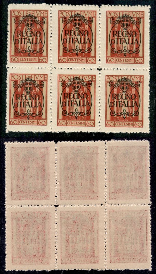1924 - 60 cent Regno d'Italia (209nc varietà) - blocco orizzontale di 6 con diversi spostamenti delle dentellature verticali - gomma integra