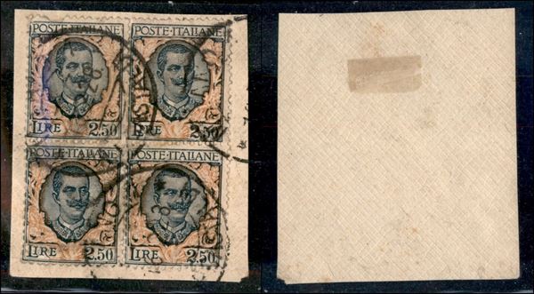 1926 – 2,50 lire Floreale (203) – quartina usata su frammento (140+)