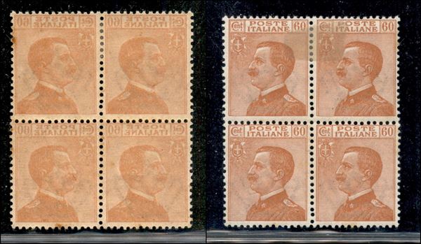 1926 - 60 cent Michetti (205f) con decalco - quartina con gomma integra - due pezzi con puntini gialli sulla dentellatura (300+)