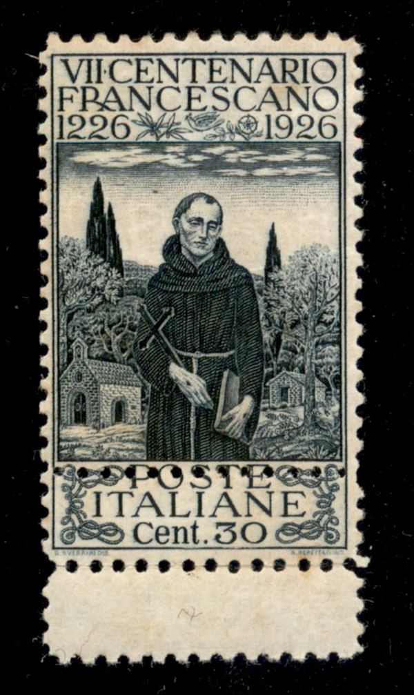 1926 - S. Francesco - 30 cent (198 varietà) con tripla dentellatura in basso - gomma integra - non catalogato