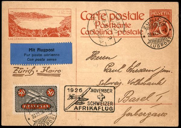 1926 (28 novembre) - Afrika Flug Zurigo Cairo - cartolina postale per Basilea via Alessandria