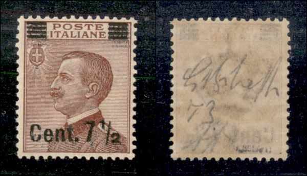 1927 - 7 1/2 cent su 85 Michetti (136b - varietà) con doppia soprastampa (una molto leggera) - gomma integra - Diena + G. Bolaffi (750)