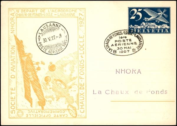 1927 (30 maggio) - Chaux de Fonds Locle Lausanne - cartolina postale speciale (Nhora) del volo