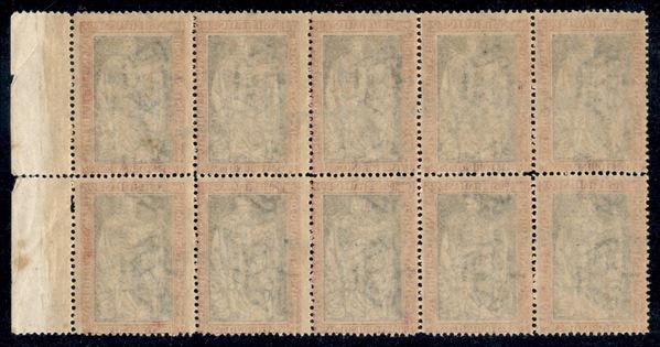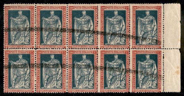 1928 - Demonetizzati - Blocco di dieci del 25 cent Filiberto (231) - bordo foglio - gomma integra - non catalogato (1500+ il normale)