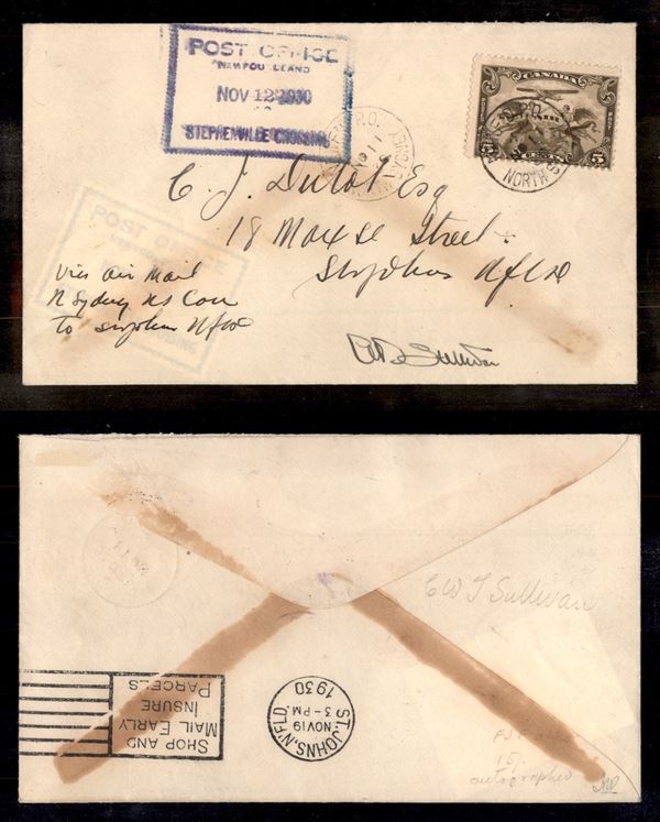 1930 – Post Office Newfoundland Stephenville Crossing – busta per St. Johns