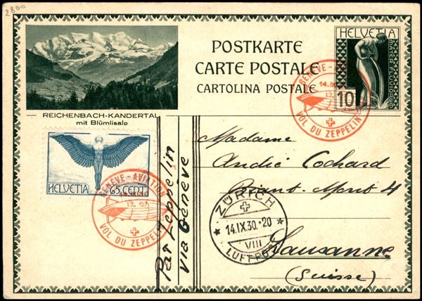 1930 (14 settembre) - Geneve Aviation/Vol du Zeppelin - aerogramma per Losanna