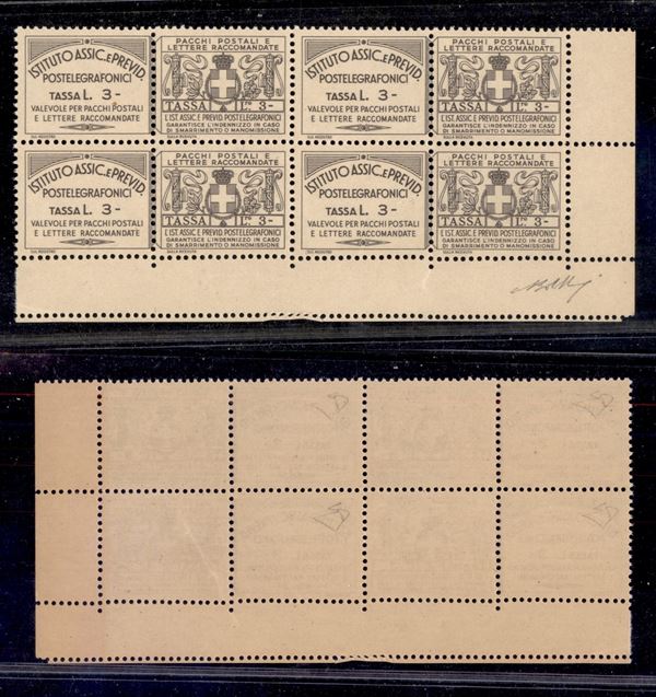 1936 - 3 lire (15) - quartina angolare - gomma integra - Bolaffi + Diena (1.200++)