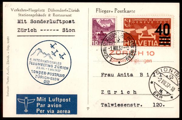 1937 (1 agosto) - Zurigo Flugmeeting - cartolina fotografica (Campo d'Aviazione) per cittą