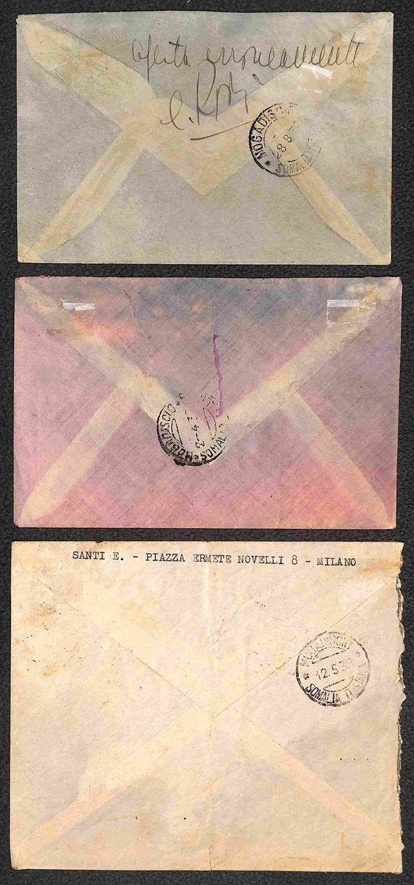 1937/1939 - Insieme di tre aerogrammi con affrancature di posta aerea del periodo per Mogadiscio (AOI)