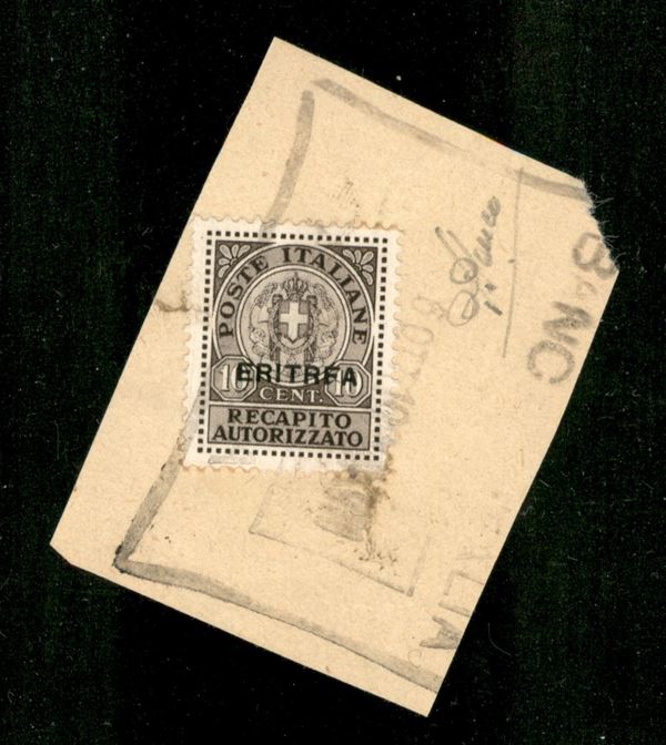 1939 - 10 cent Recapito (1a) con E rotta - usato su frammento
