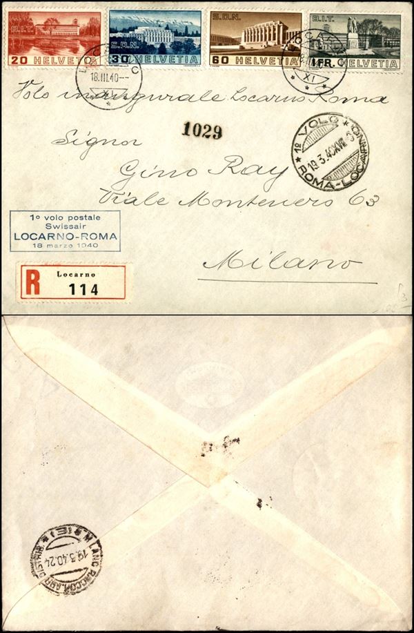 1940 (18 marzo) - Locarno Roma - aerogramma raccomandato per Milano