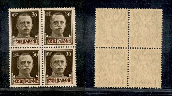 1941 - 30 cent (5b/5) in quartina - errore SOLE in alto a sinistra - gomma integra (285++)