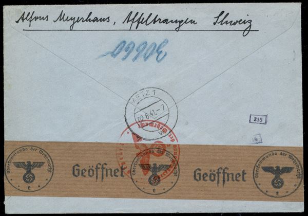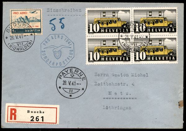 1941 (28 maggio) - Pro Aereo Buochs Payerne - aerogramma raccomandato per Metz - censure