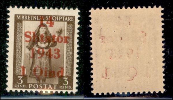 1943 - 1 qind su 3 (1d) - soprastampa in alto - gomma integra (165)