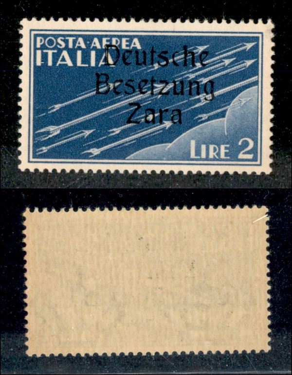 1943 - 2 lire (6w - Aerea) - c + g strette (pos. 34) - gomma integra (165)