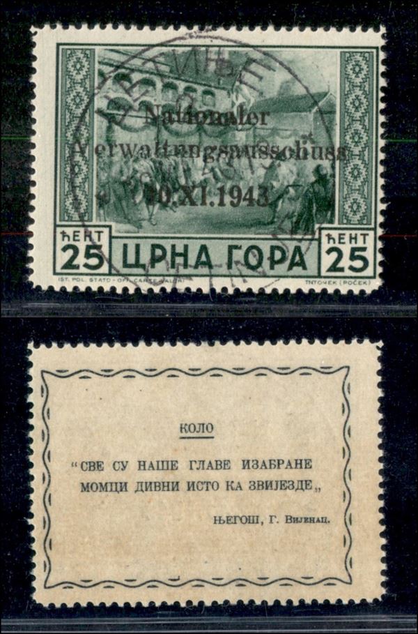 1943 - 25 cent (10) usato a Cetinje nel giorno d'emissione (10.XI.43)