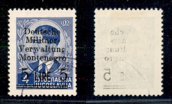 1943 - 5 lire su 4 din (6 varietà) usato - parziale decalco (150+)