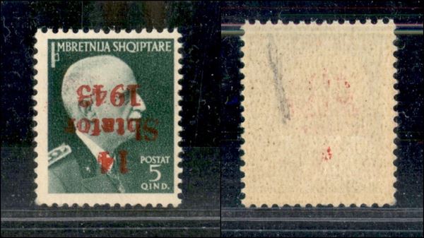 1943 - 5 qind soprastampato (4a) - soprastampa capovolta - nuovo con gomma (220)