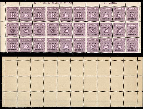 1943 - 50 cent (4) - blocco angolare di 30 - gomma integra