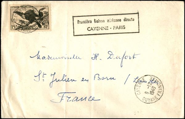1943 (9 dicembre) - Cayenne Parigi - aerogramma del volo