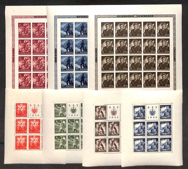 1944 – Minifogli Stato Croato non dentellati (123/125) + Fronte del Lavoro (Unif. 127/130) – gomma integra