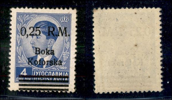 1944 - 0,25 R.M. su 4 din (9 - varietà) - soprastampa in basso + punto piccolo dopo R - gomma integra - non catalogato