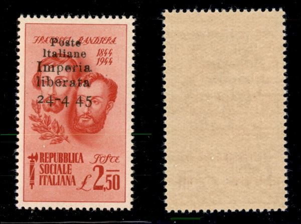 1945 - 2,50 lire Bandiera (15c) senza trattino tra 4 e 45 - gomma integra