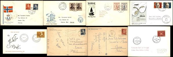 1950/1963 - 2 cartoline + 6 buste FDC (tre viaggiate per l’Italia) del periodo