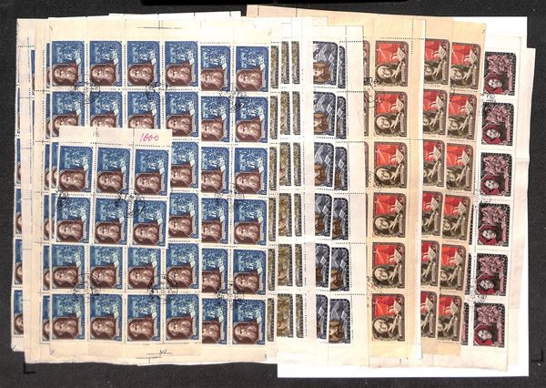 1956 - Scrittori (1907/1911) - 5 valori della serie in blocchi - 690 pezzi - usati (200+)