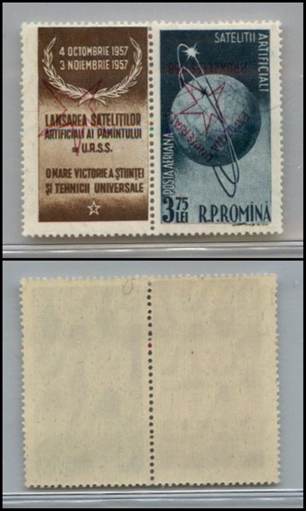 1957 - 3,75 lei (1720) - coppia con soprastampa capovolta - gomma integra