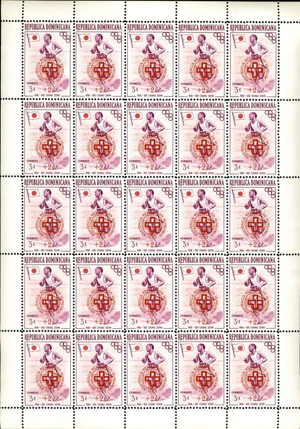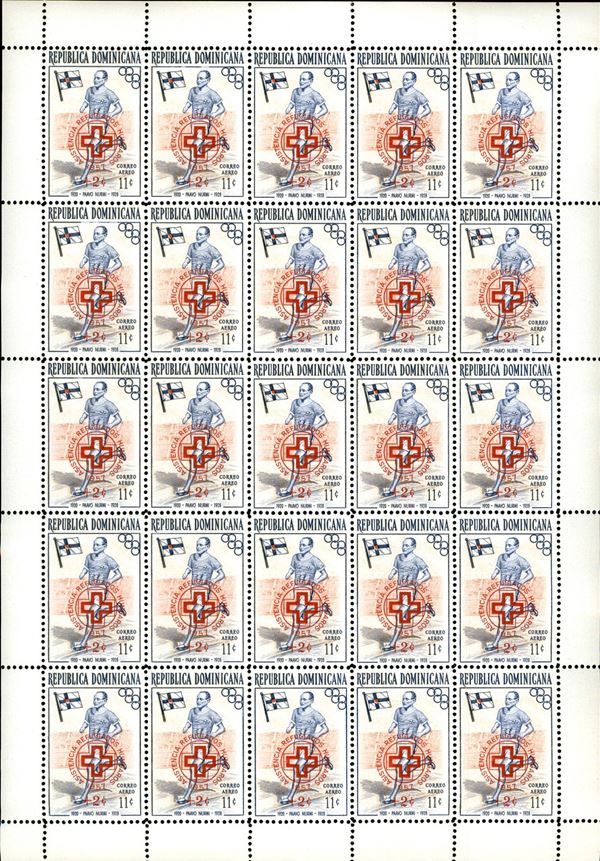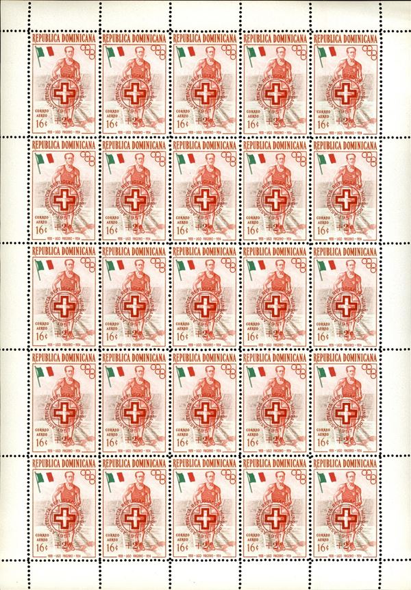 1957 - Soprastampati assistenza rifugiati (569/584) - serie completa in minifogli di 25 - gomma integra