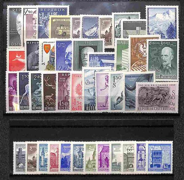 1957/1959 - Serie complete + spezzature del periodo su cartoncino (1031/1072) - 42 valori - gomma integra/originale (64)