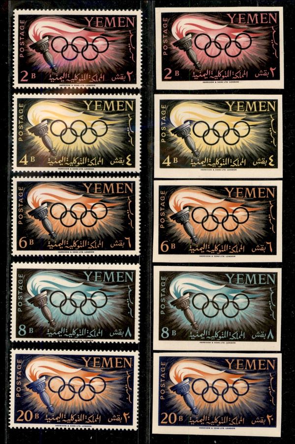 1960 - Nord Yemen - Olimpiadi Roma (200/204 A + B) - serie complete dentellati + non dentellati